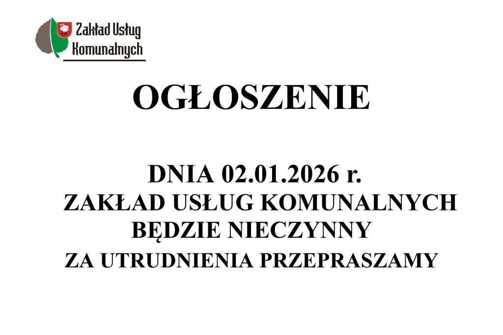 DNIA 02.01.2026 r. ZAKŁAD USŁUG KOMUNALNYCH BĘDZIE NIECZYNNY / Aktualności / By Zakład Usług Komunalnych